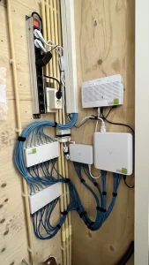 Wij herstructureren meterkasten met overzichtelijke bekabeling, stevige montage van netwerkapparatuur en duidelijke labeling. Dit verbetert niet alleen de betrouwbaarheid van het netwerk, maar maakt beheer en uitbreiding vele malen eenvoudiger. Of het gaat om een bestaande installatie die opnieuw moet worden ingericht, of een volledig nieuwe meterkast: wij leveren een nette, zakelijke afwerking die voldoet aan de hoogste professionele normen.